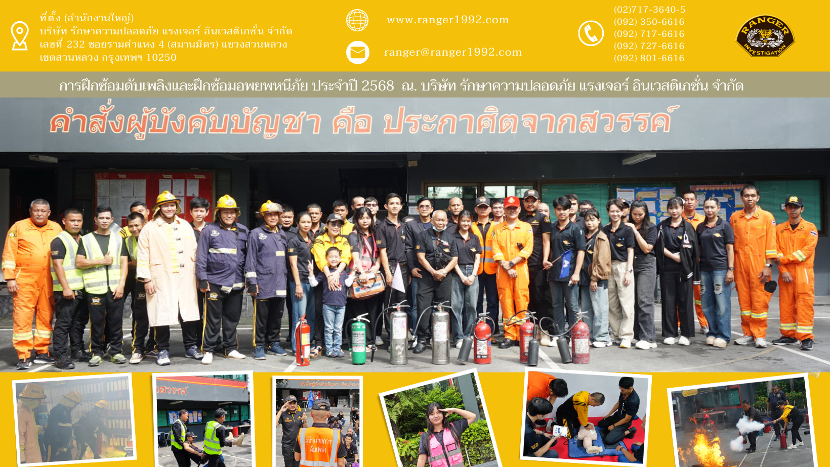 การฝึกซ้อมดับเพลิงและฝึกซ้อมอพยพหนีภัย ประจำปี 2568 ณ บริษัท รักษาความปลอดภัย แรงเจอร์ อินเวสติเกชั่น จำกัด โดยเจ้าพนักงานป้องกันและบรรเทาสาธารณภัยชำนาญการ สถานีดับเพลิงและกู้ภัยประเวศ กองปฏิบัติการดับเพลิงและกู้ภัย สำนักป้องกันและบรรเทาสาธารณภัยกรุงเทพฯ Read More