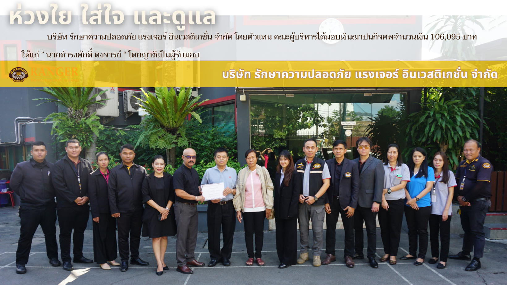 มอบเงินช่วยเหลือฌาปนกิจศพให้แก่ญาติของ นายดำรงศักดิ์ ดงจารย์ วันที่ 16 ธันวาคม 2568 บริษัท รักษาความปลอดภัย แรงเจอร์ อินเวสติเกชั่น จำกัด โดยตัวแทน คณะผู้บริหารได้มอบเงินช่วยเหลือญาติพนักงาน Read More